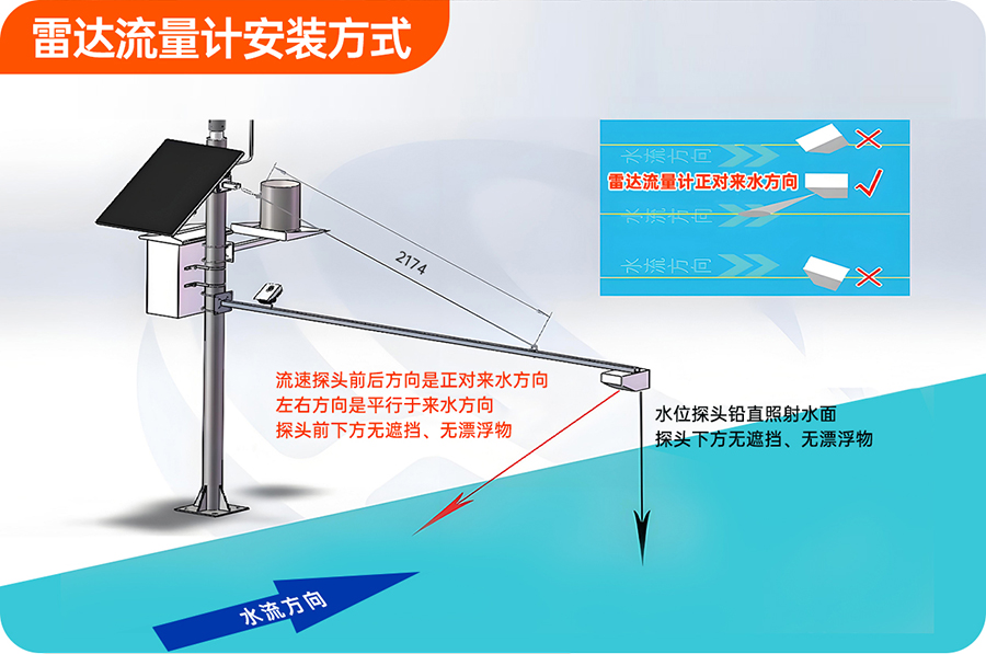 雷達流量計安裝方式 雷達流量計,為了得到較高精度,雷達一體式流量計安裝在無巨大塊石阻水,無巨大漩渦、亂流等現(xiàn)象的位置。