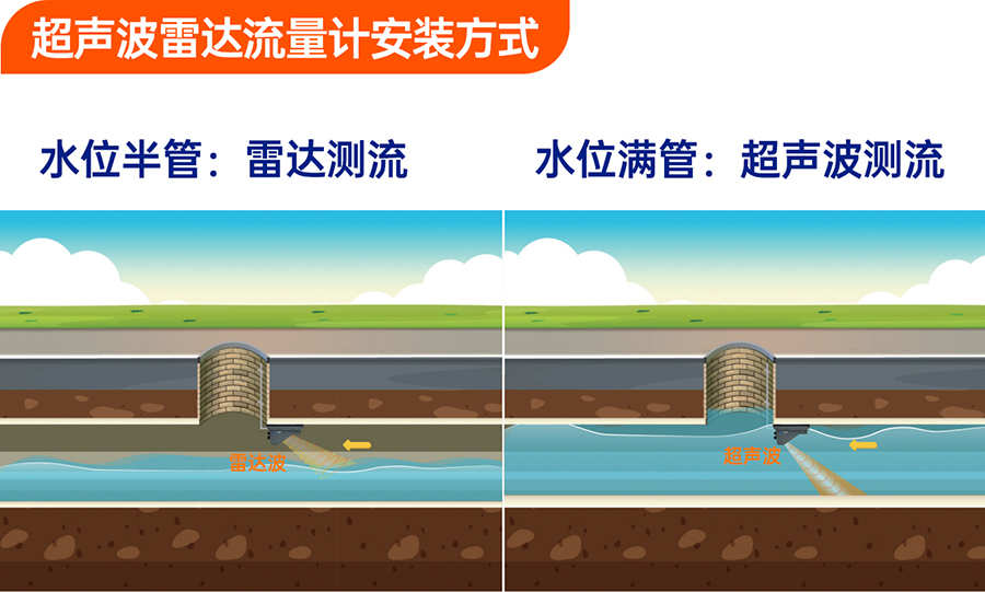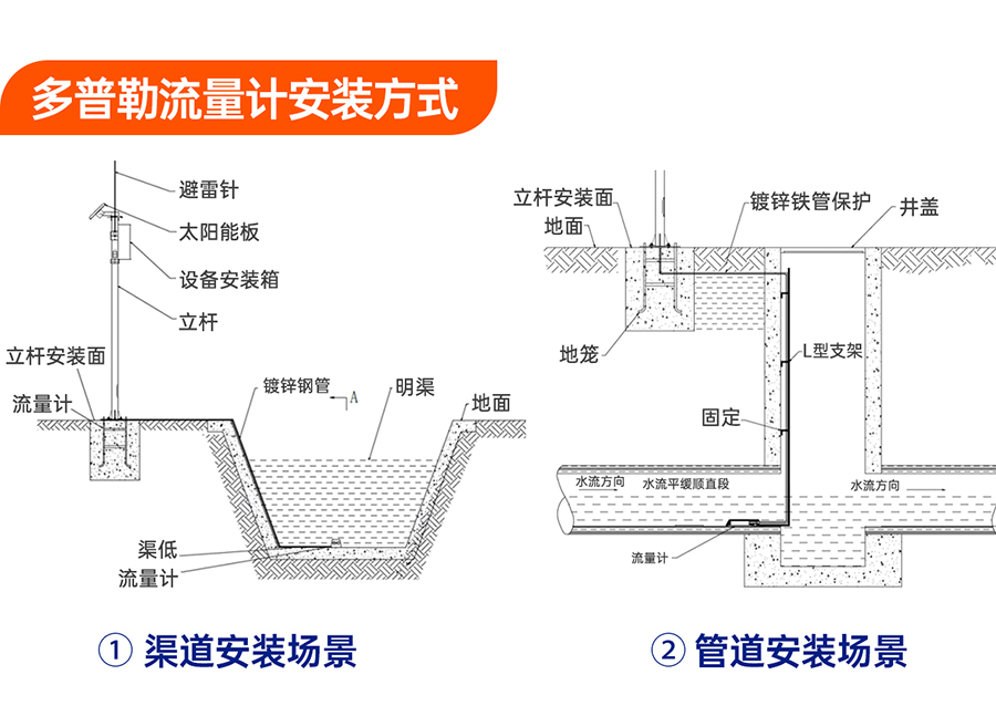 支持組播優(yōu)化 超聲雷達流量計,該設(shè)備是針對管網(wǎng)環(huán)境設(shè)計的,不適用河道、水庫等空曠開放的場景。如有其它需求,可聯(lián)系我司銷售進行咨詢。 超聲波雷達流量計安裝方式: