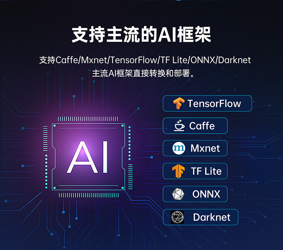 支持Caffe/Mxnet/TensorFlow/TF Lite/ONNX/Darknet等模型.