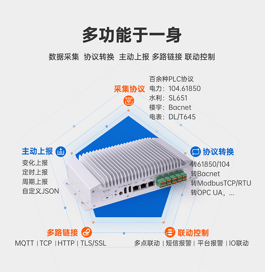 多種PLC協(xié)議,IEC104,IEC61850,Bacnet,DLT645等