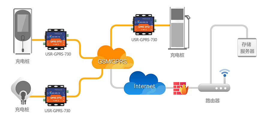有人DTU USR-GPRS-730在充電樁數(shù)據(jù)上傳中的應(yīng)用: