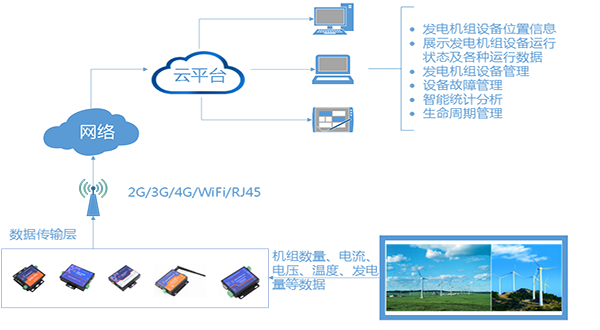 有人發(fā)電機(jī)組物聯(lián)網(wǎng)遠(yuǎn)程監(jiān)控系統(tǒng)對(duì)網(wǎng)絡(luò)內(nèi)的風(fēng)力發(fā)電機(jī)組實(shí)時(shí)的監(jiān)測(cè)和控制,實(shí)現(xiàn)了對(duì)風(fēng)力發(fā)電機(jī)組的遠(yuǎn)程在線監(jiān)測(cè)、跟蹤、狀態(tài)確認(rèn)和控制及高效節(jié)能運(yùn)行。從而提高風(fēng)力發(fā)電機(jī)組設(shè)備的資源利用率和生產(chǎn)力水平,有效提高機(jī)組運(yùn)行安全性、任務(wù)可靠性以及降低系統(tǒng)全壽命周期費(fèi)用,有利于預(yù)防機(jī)組惡性事故發(fā)生、避免人身傷亡及巨大經(jīng)濟(jì)損失。