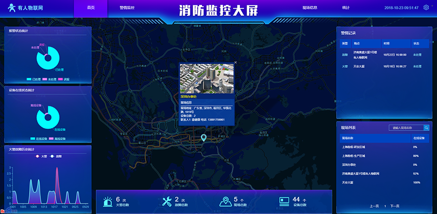 (3)監(jiān)管系統(tǒng)以大屏、手機(jī)端、APP等多種不同形式向外發(fā)出預(yù)警指令,提醒相關(guān)人員前往查看火警,將火災(zāi)事故損失降到最低