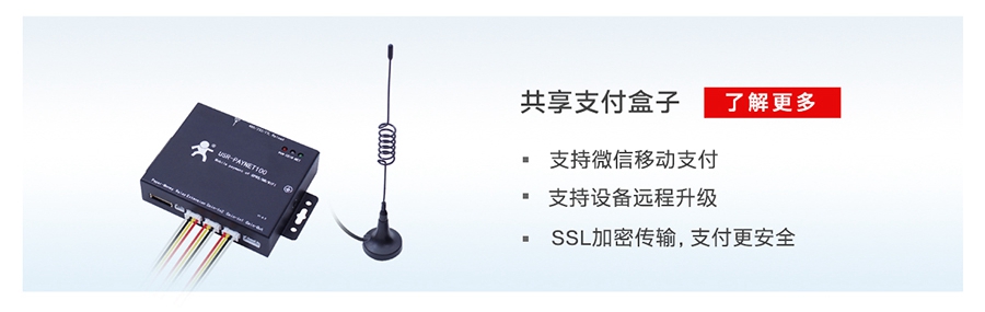 隨著支付寶、微信等平臺(tái)的迅速發(fā)展,移動(dòng)支付愈加便捷,但共享設(shè)備要實(shí)現(xiàn)掃碼支付的自助化服務(wù)需要將掃碼支付與共享終端結(jié)合,有人物聯(lián)網(wǎng)針對(duì)共享行業(yè)運(yùn)營(yíng)痛點(diǎn),研發(fā)了USR-PAYNET100-GR共享支付掃碼盒子,并利用 4G/NB-IoT/Wi-Fi 等聯(lián)網(wǎng)方式與有人云共享管理平臺(tái)實(shí)現(xiàn)了數(shù)據(jù)的互聯(lián)。有人物聯(lián)網(wǎng)的一站式服務(wù),可幫運(yùn)營(yíng)商實(shí)現(xiàn)共享設(shè)備的遠(yuǎn)程監(jiān)控和維護(hù)、財(cái)務(wù)分析管理等智能化管理,提高管理效率、降低運(yùn)營(yíng)成本。