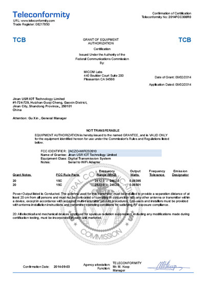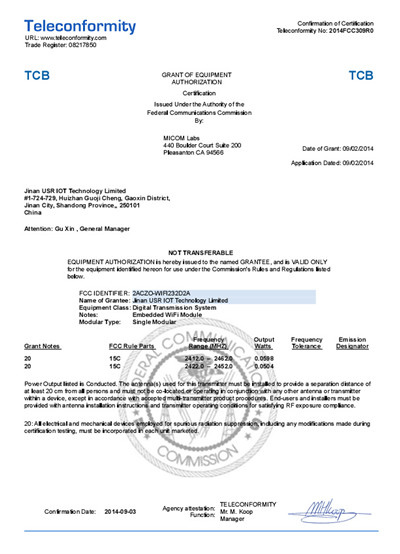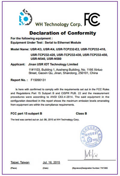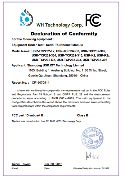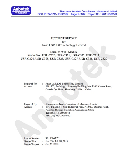 WIFI串口服務(wù)器 FCC 認(rèn)證