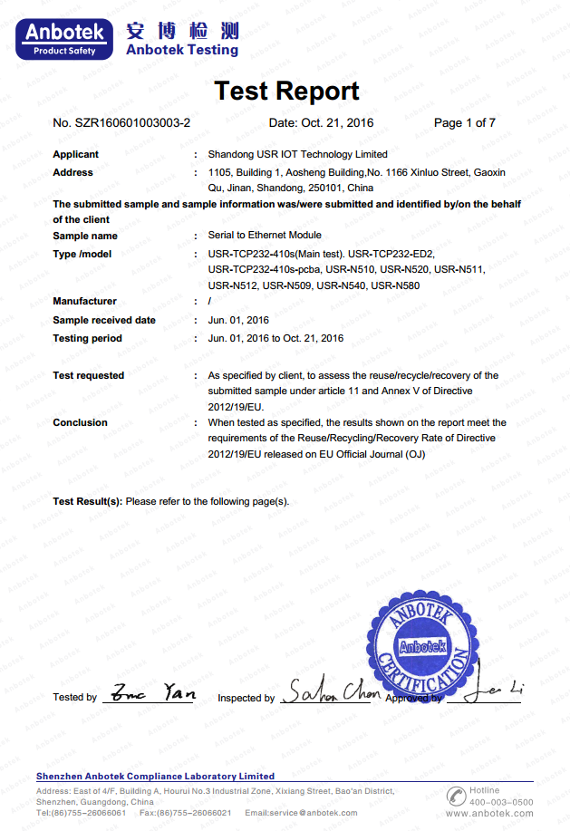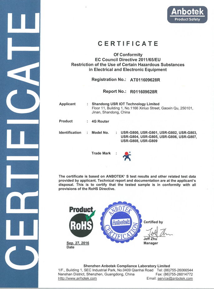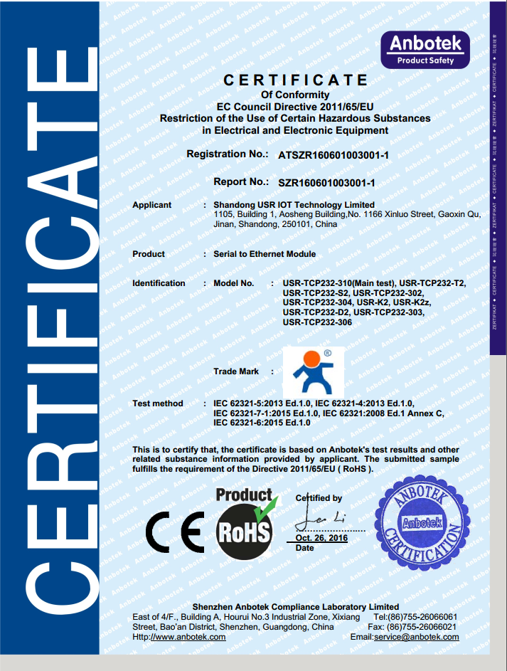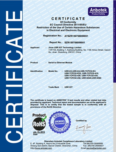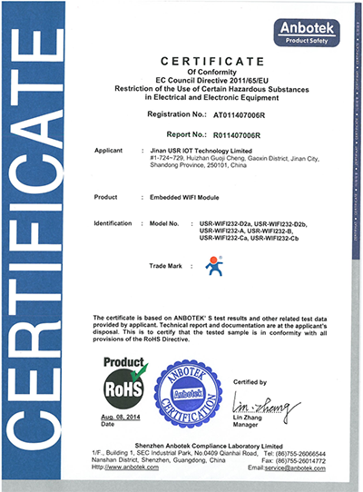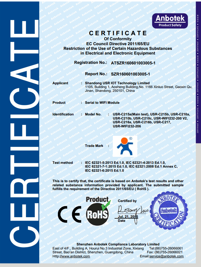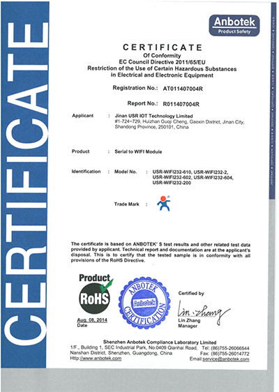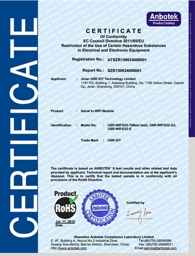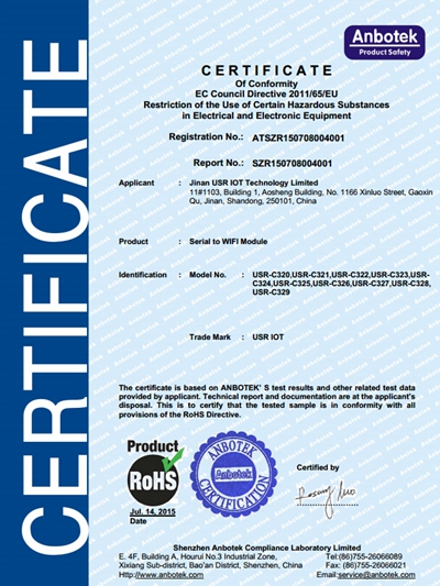 WIFI串口服務(wù)器 ROHS 認(rèn)證
