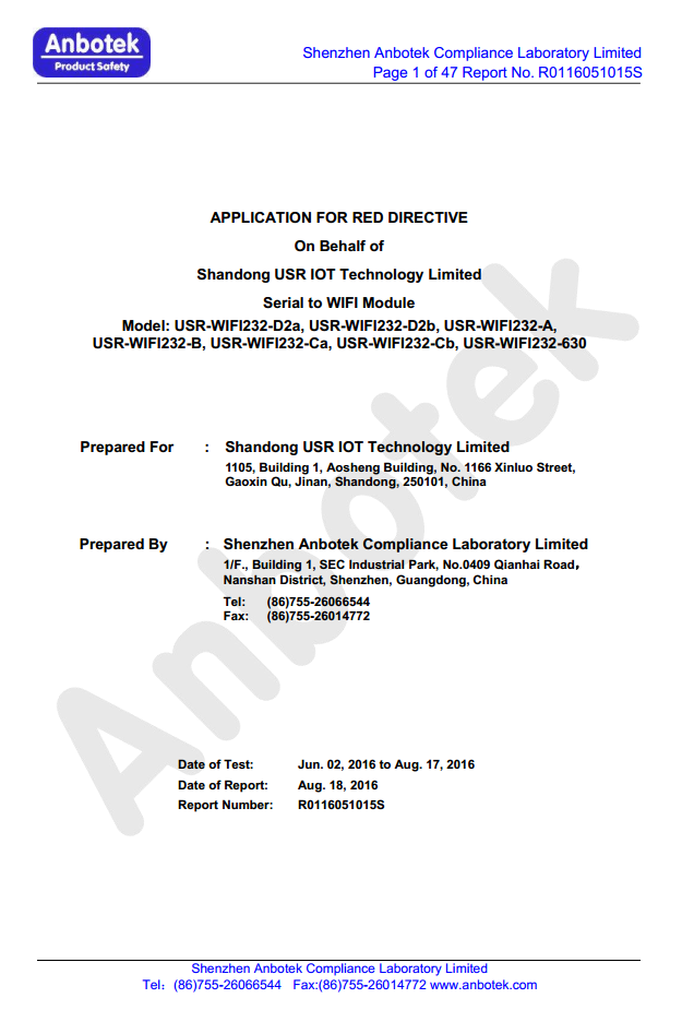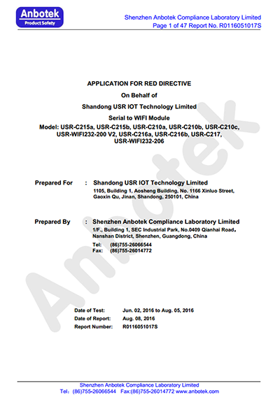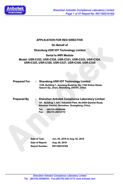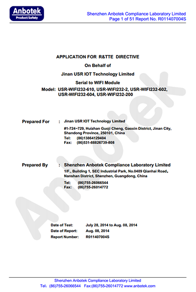 WIFI串口服務(wù)器 CE認(rèn)證