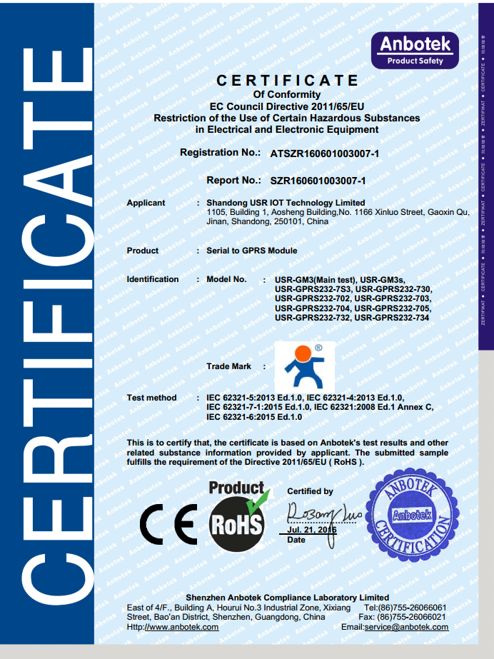 GPRS DTU模塊系列 RoHS認(rèn)證